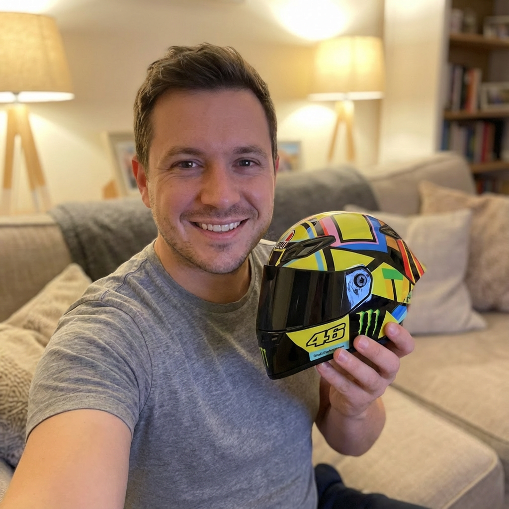 Didn’t expect the quality to be THIS good. The colors pop like a real race helmet and it has real weight. Perfect for my shelf — collecting more soon.