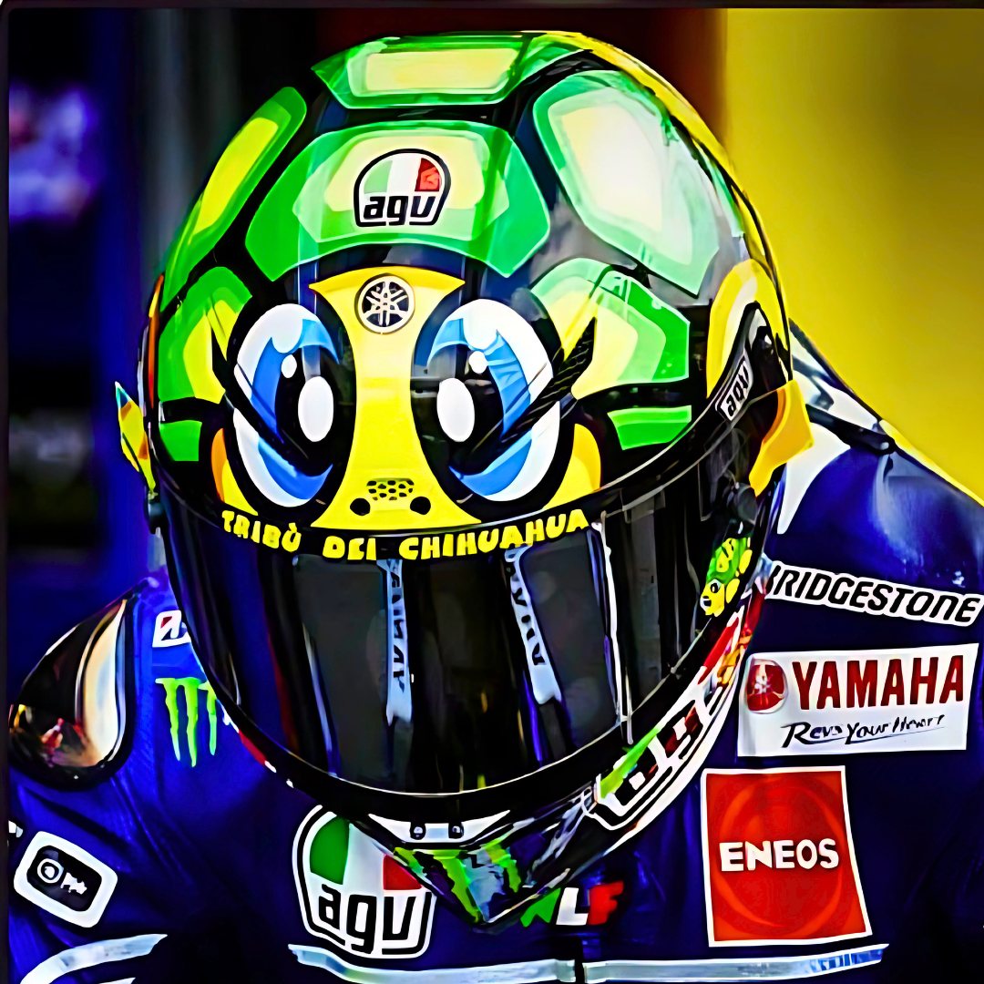 Inspired by his beloved dogs, this design shows Rossi’s playful, loyal side. It’s not just racing, it’s family.