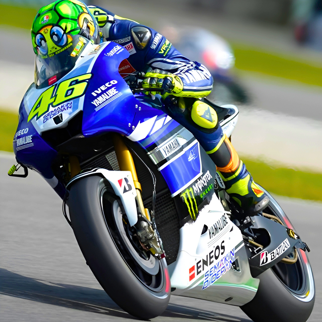 Used in multiple seasons and adored by fans, this helmet is a fan-favorite for a reason. Fun, bold, and 100% Rossi.